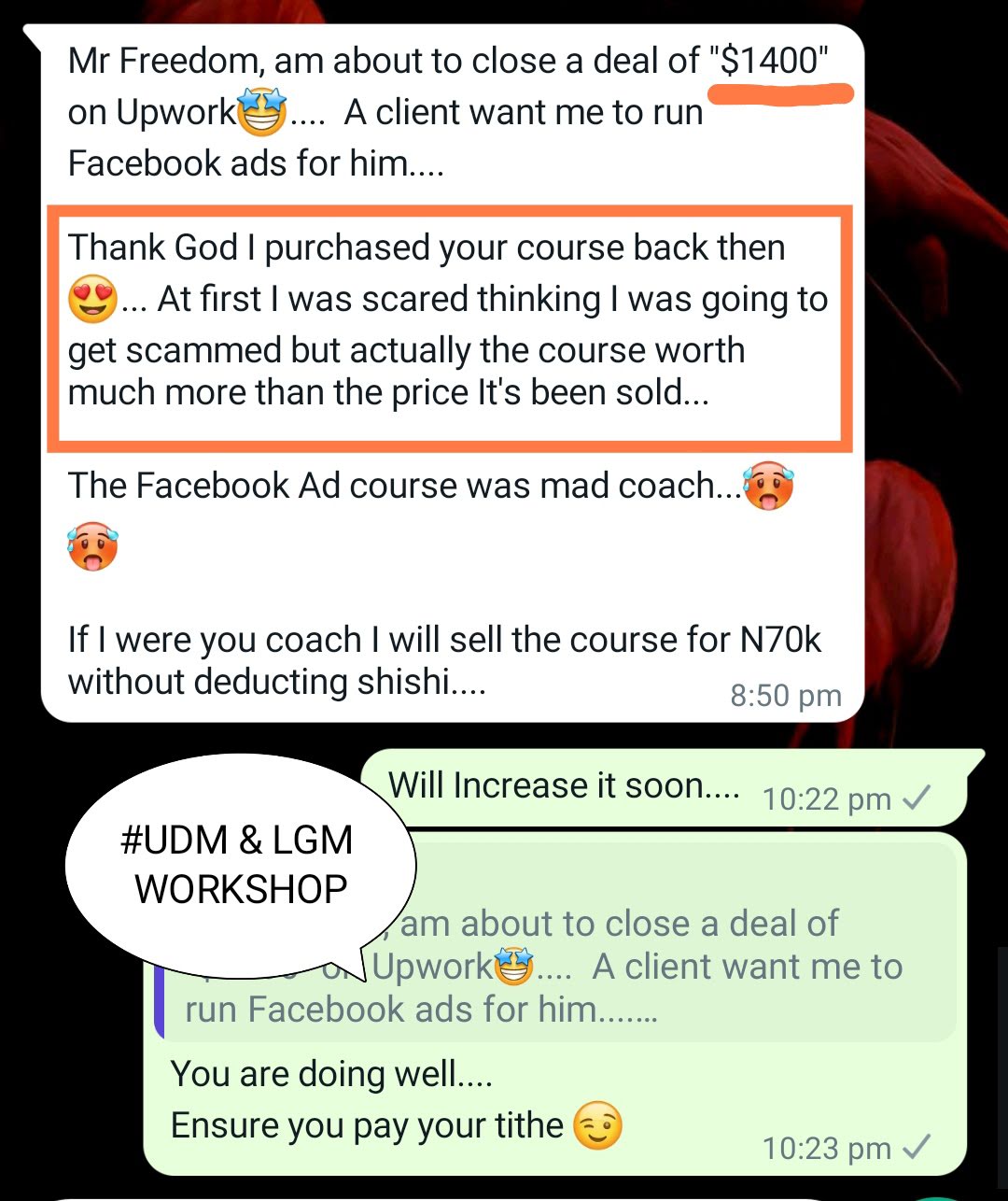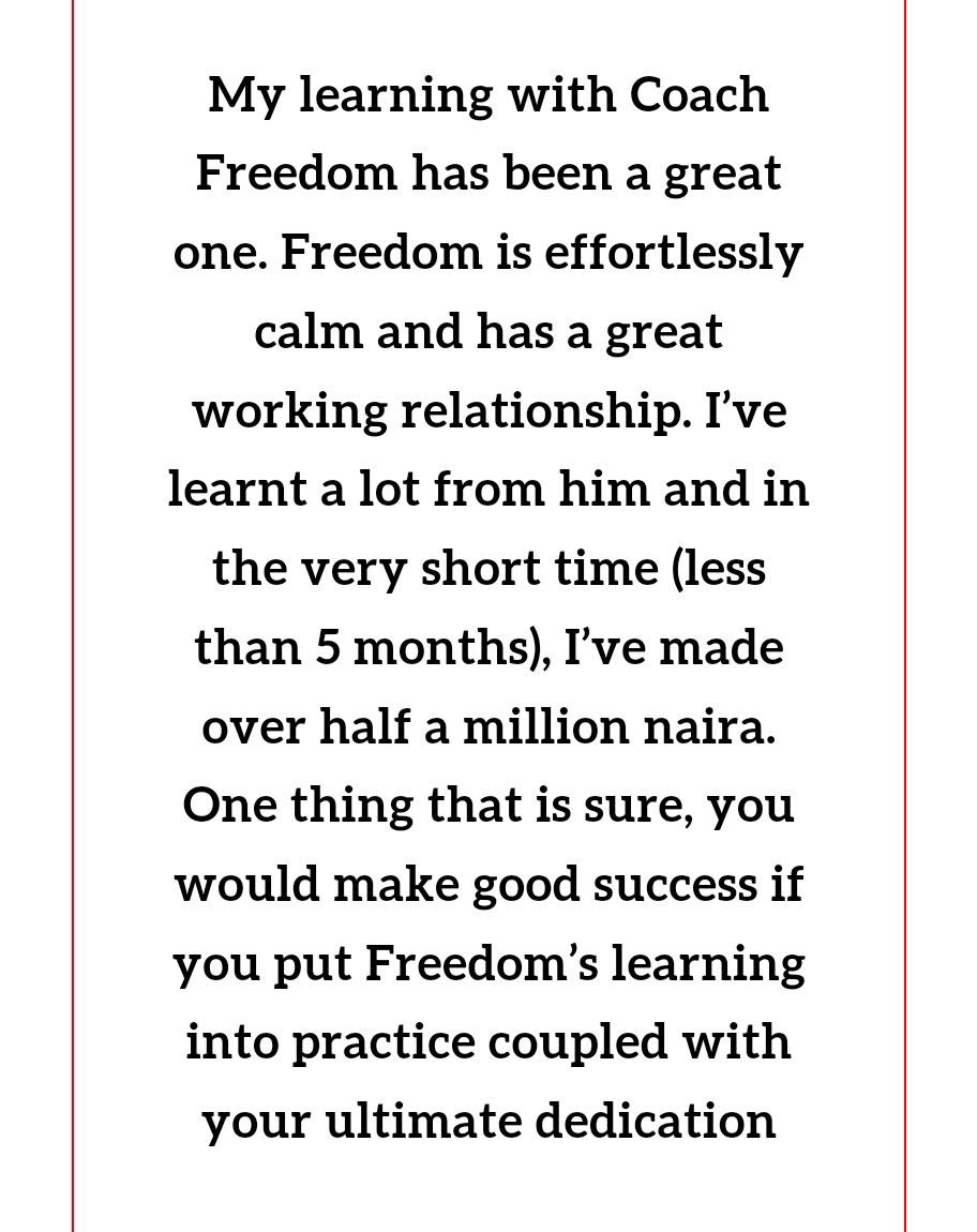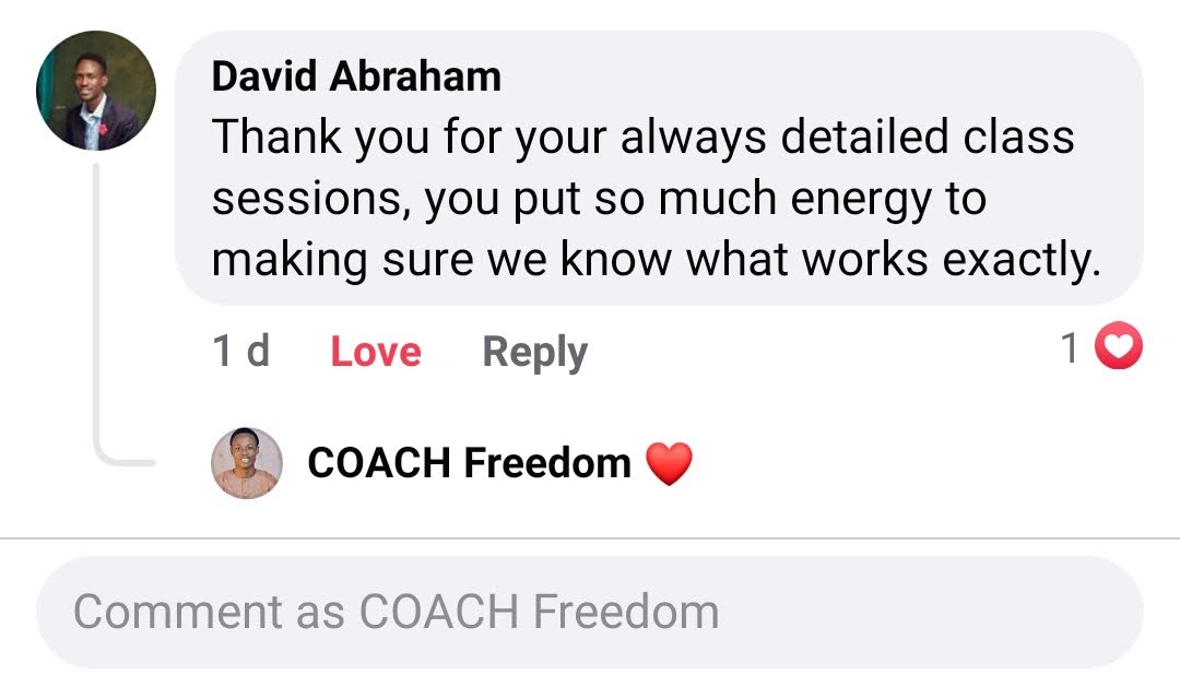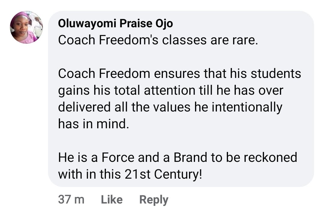 “I’m a living testimony. Freedom taught us how to structure our skills, create a personal brand, and monetize it — even from our room. Just one session with him changed my entire view about online income. I highly recommend his trainings.